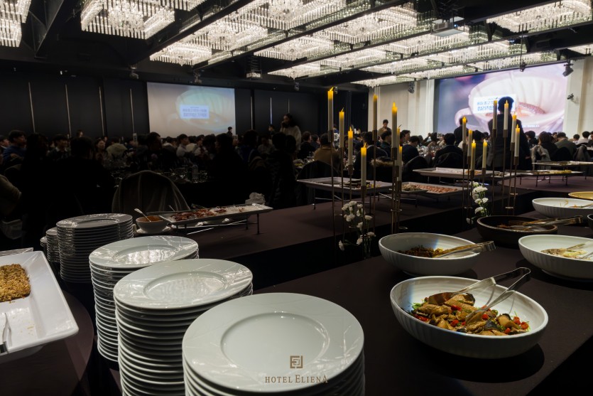 송년회 행사가 열리는 같은 공간, 엘리에나 호텔의 셰프팀의 풍성한 뷔페 라인과 감각적인 디저트 메뉴를 경험할 수 있었습니다.